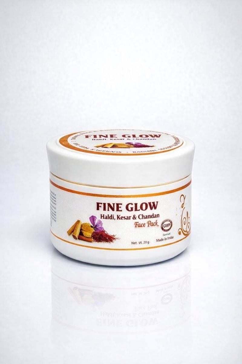 Fine Glow Haldi, Kesar & Chandan Face Pack enhances natural radiance, controls oil, and improves uneven tone, leaving skin fresh, smooth, and glowing.